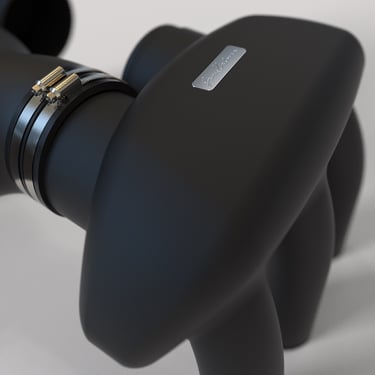 Reproduction à l'identique de la semelle du gonfleur d'origine Porsche. Imprimé en PA12, finition grain fin et 3 pieds en silicone pour un rendu origine.