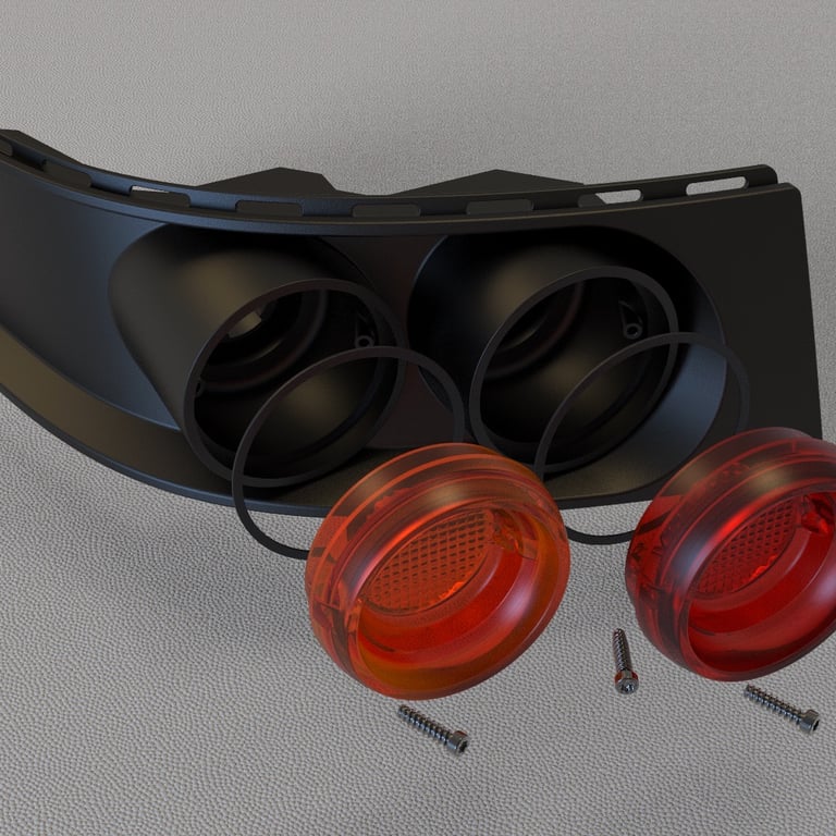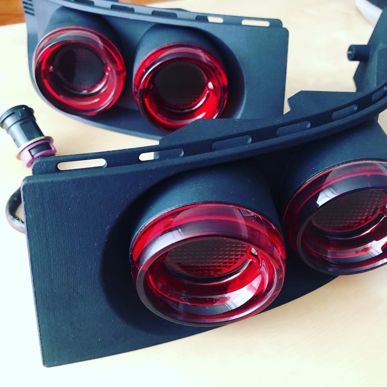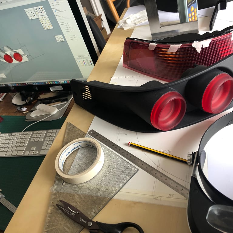 When a customer asked me in 2017 if I could make custom lights for his 964-R project... I wondered if we were going to the end. Many hours spent designing, creating a unique model and just as many hours modelling and doing 3D simulations. The most complicated job? Not having a 3D scanner to save time. But with a lot of tricks and 3D measurements, the result is there. The bodies of the lights are printed in black Nylon PA12 with a smooth finish and the optics are printed in transparent red resin. Quite a few hours of finishing work and tests on a friend's 964 to finalise the assemblies.