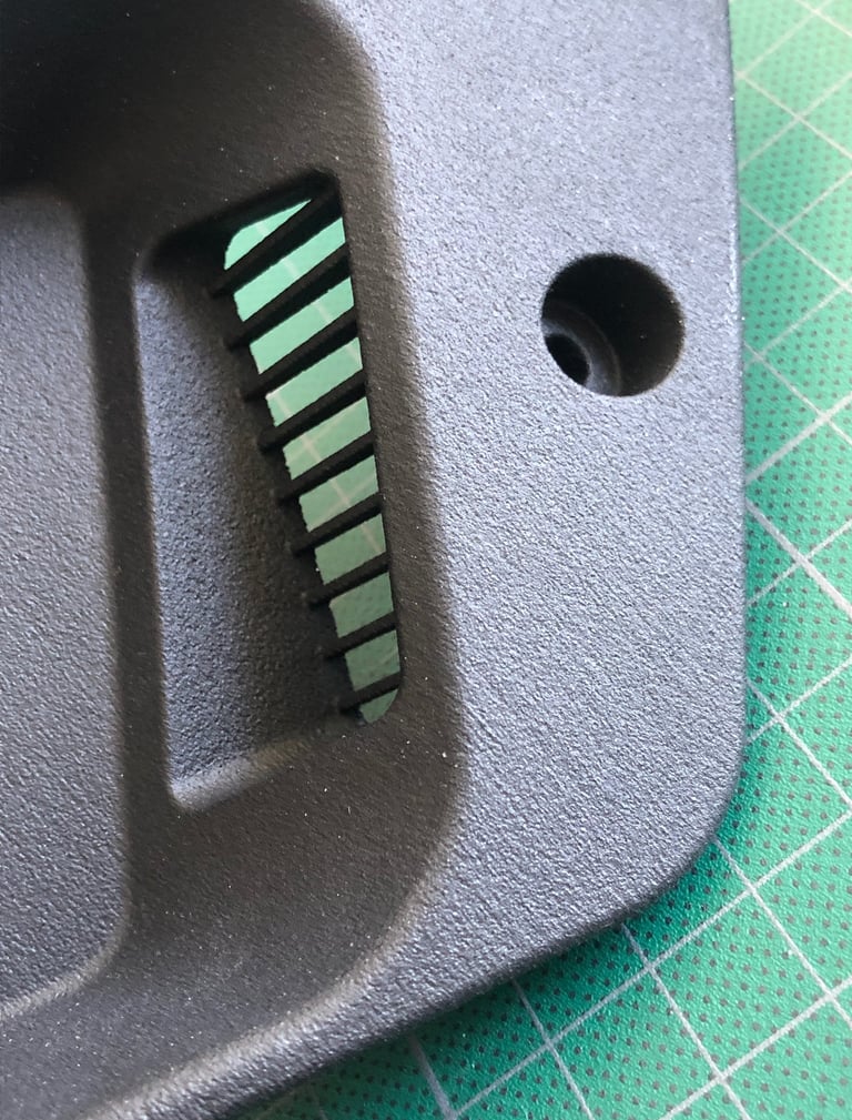 And finally SLS. Or powder printing. This technique, democratised in recent years by HP (yes, printers maker), enables the printing of near-perfect parts, both in terms of surface finish and mechanical characteristics. It uses PA11 or PA12 nylon, which is UV, petrol and oil resistant. This nylon also allows for flexibility if required on fixings such as clips... in short, it's ideal for durable mechanical parts.